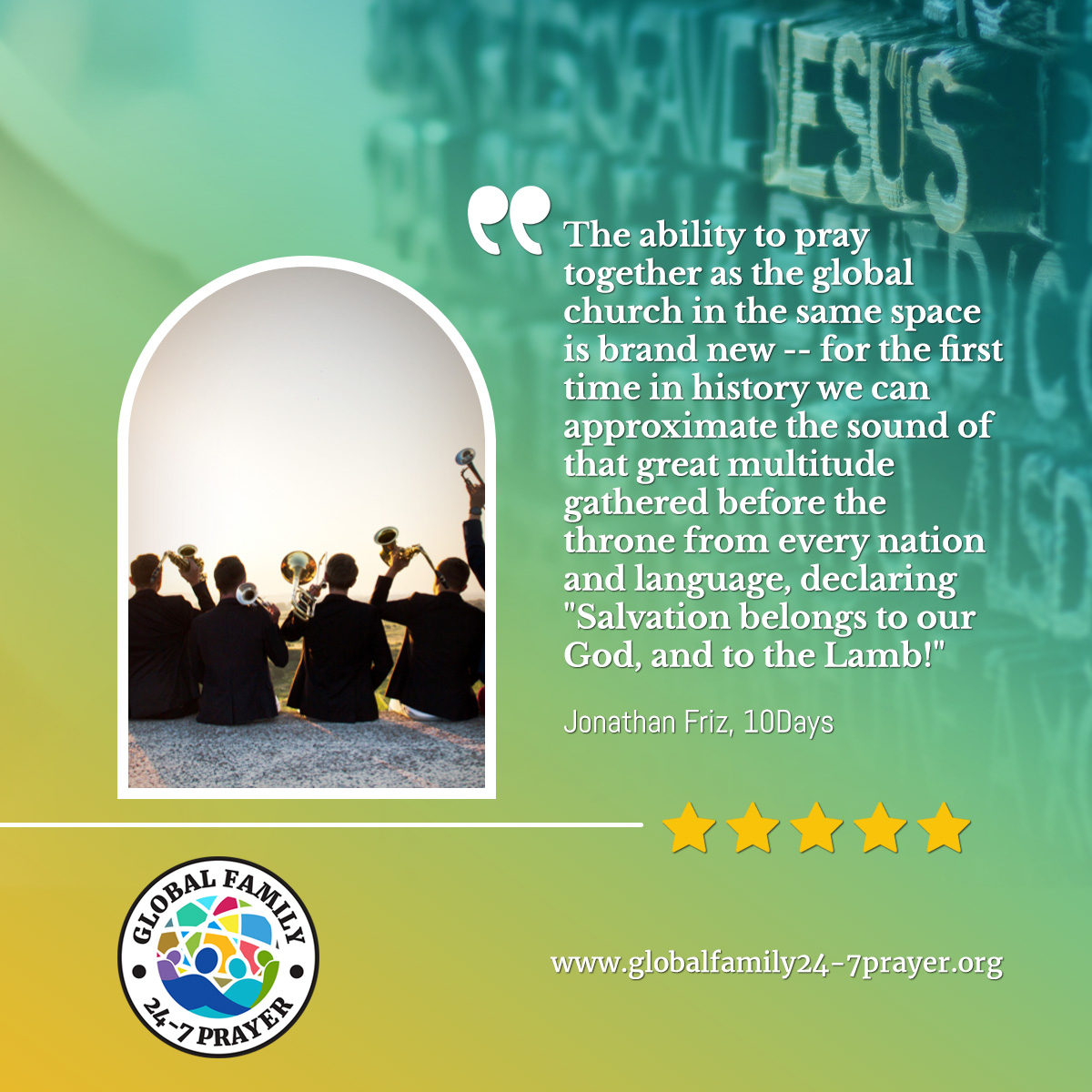 Jonathan Friz het gesê: "Die vermoë om saam te bid as die globale kerk in dieselfde ruimte is splinternuut - vir die eerste keer in die geskiedenis kan ons die klank van daardie groot menigte wat voor die troon versamel is van elke nasie en taal benader, en verklaar "Redding behoort aan onse God en aan die Lam!"